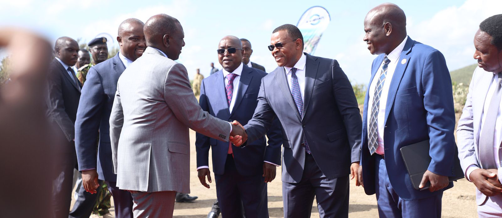 KenGen General Manager, Geothermal Development, Peketsa Mangi, welcomes the President of the Republic of Guinea Bissau, Umaro Sissoco Embaló, to Olkaria Geothermal fields for a familiarization tour during his state visit to Kenya.