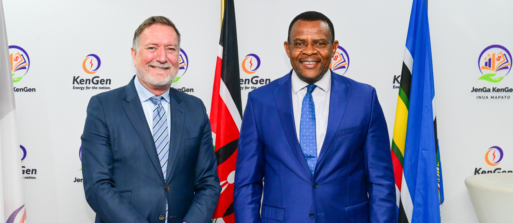Nairobi, during a courtesy call to introduce Simon J. Stolp (left), the newly appointed Practice Manager for East Africa Energy & Extractives. The meeting focused on potential collaboration and financing opportunities within KenGen’s G2G 2034 corporate strategy project pipeline.
